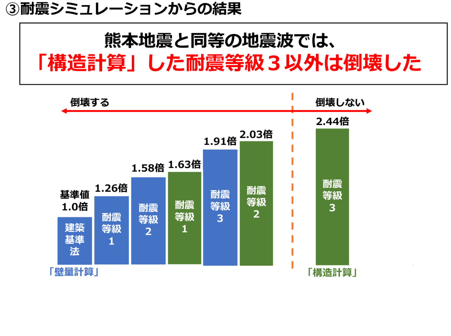 1つのプラン例ではありますが、倒壊しない為に2.44倍の壁が必要であることは、構造計算を実施することで判明します。