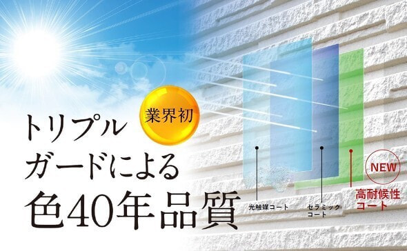 一般的な外壁は10~15年で塗り替えが必要ですが、ダイシンホームの標準仕様では40年の耐久品質を誇るグレードを採用しています。