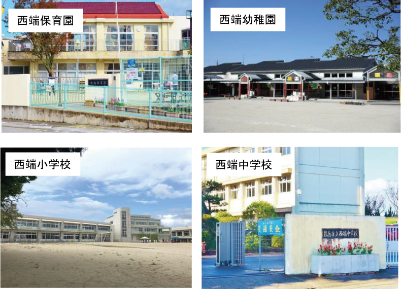 生活道路から一本入った落ち着いた場所であり、西端小・中学校の間に位置するため、通学にはこの上ない立地条件になっています。