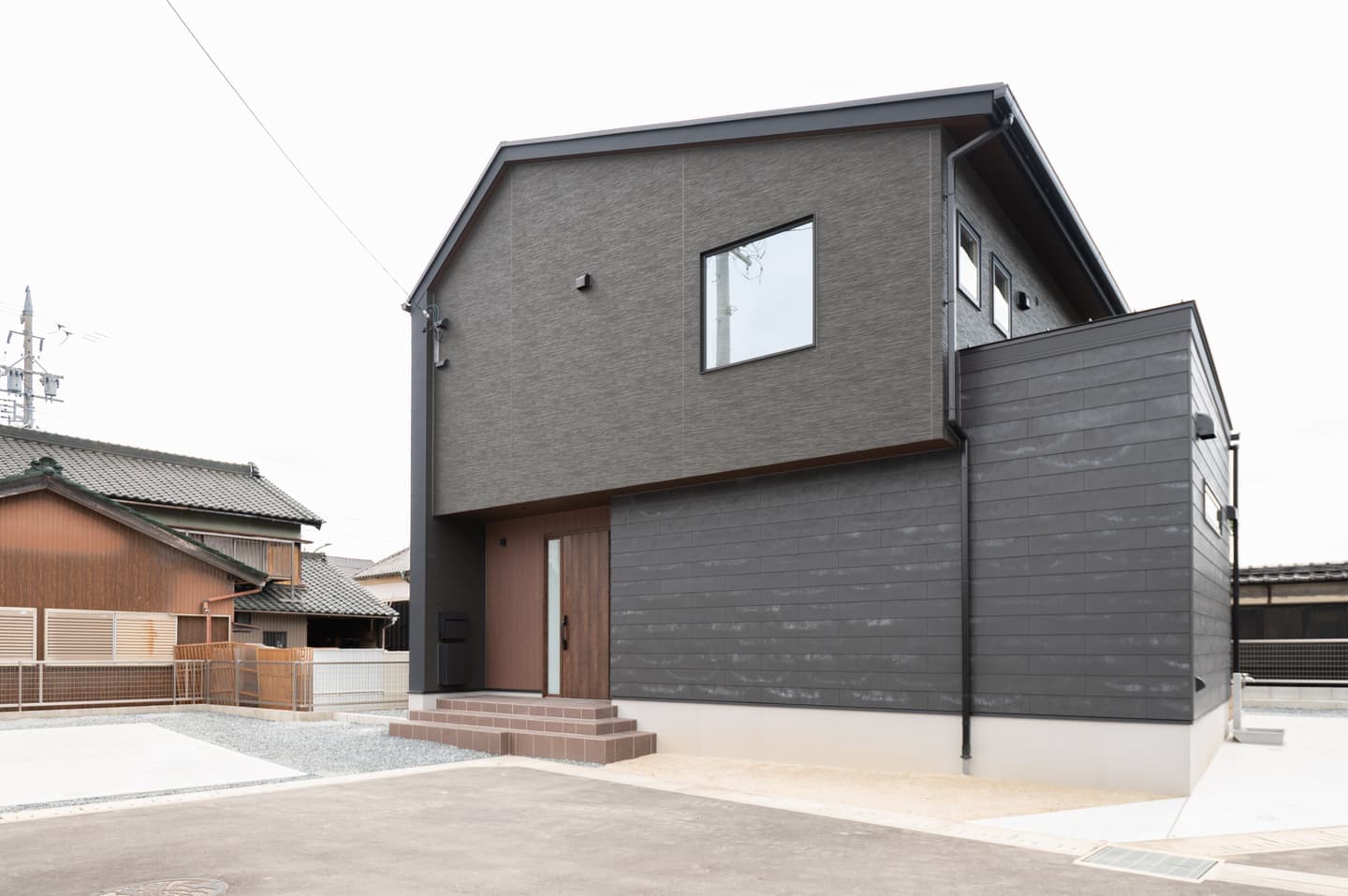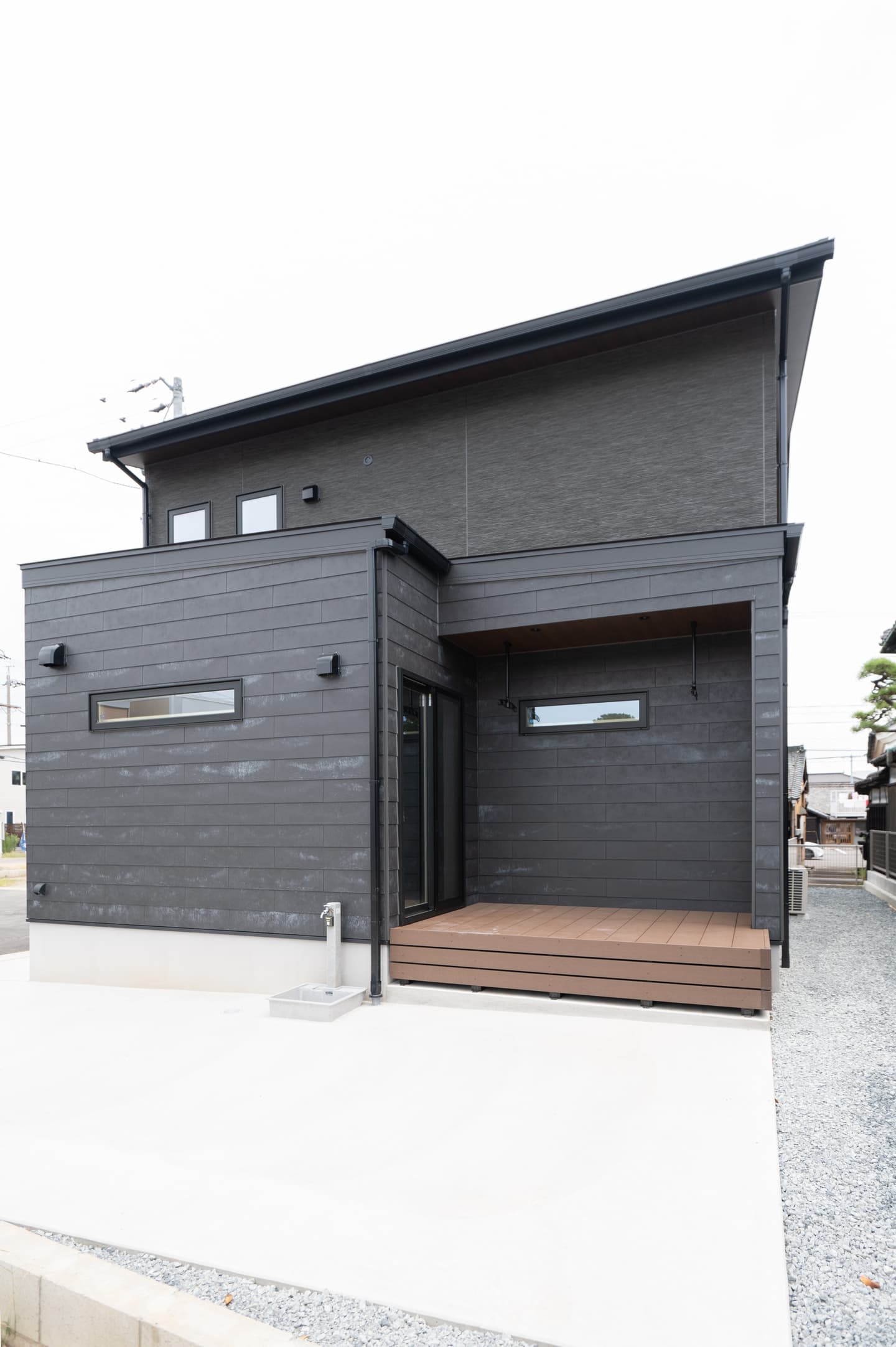 若宮分譲地のモデルハウス第1弾として、分譲地の中央付近にブラックの外壁で仕上げたスタイリッシュモダンなデザイナーズ住宅を建築しました。