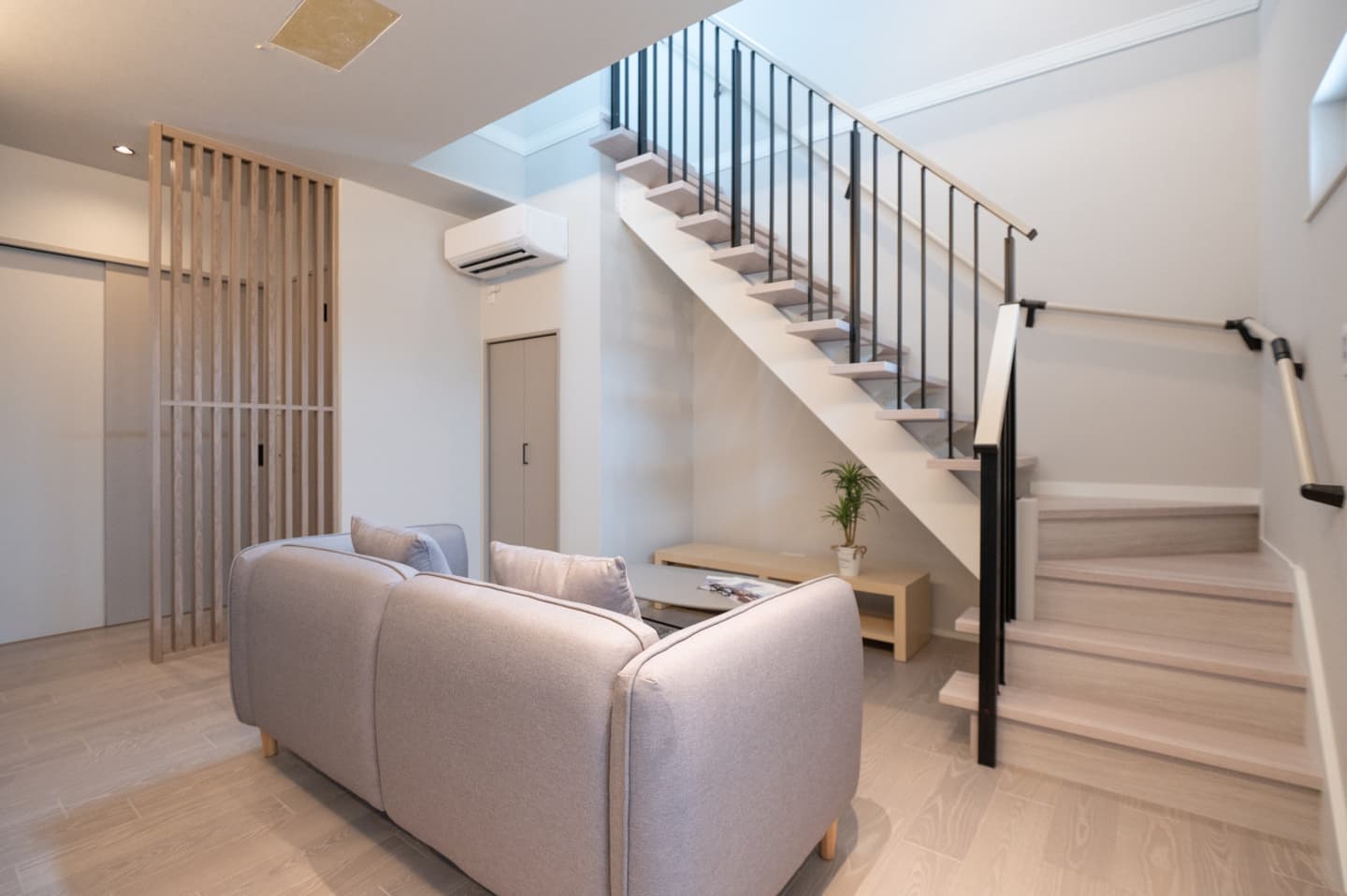・インテリア階段の手すりをブラック色にし、空間を引き締める役割も果たしています